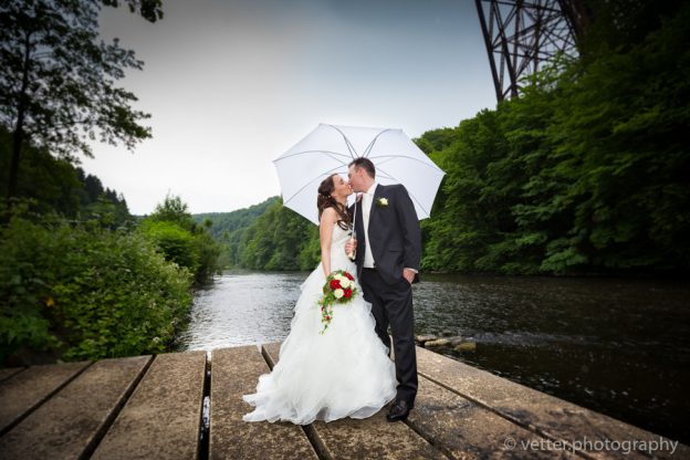 Als sich beim Vorgespräch das erste mal unsere Wege kreuzten, merkten wir schnell das wir auf einer Wellenlänge sind. Im Juni 2015 war es dann soweit und Nadine und Andreas gaben sich in der Luther-Kirche das Ja Wort. Als Nadine in Ihrem wunderschönem Brautkleid (gefolgt von Ihren vier Brautjungfern) endlich in die Kirche einzog wurde Andreas, der sichtlich angespannt am Altar wartete, erlöst und die Zeremonie konnte losgehen. Nach der Trauung ging es im Autocorso zum Müngstener Brückenpark. Im Haus Müngsten fand dann der Sektempfang statt, gefolgt von dem Brautpaarshooting im Brückenpark. Hier wurden wir dann vom ersten Regen überrascht, welches sich aber keineswegs auf die Stimmung oder Fotos auswirkte. Zurück in der Feierlocation warteten die Gäste mit sehr witzigen Spielen auf die beiden. Nach dem reichhaltigen Buffet wurde auch die PhotoBooth „freigegeben“ welche bis in die Nacht non-stop lief – die Stimmung war einfach grandios.